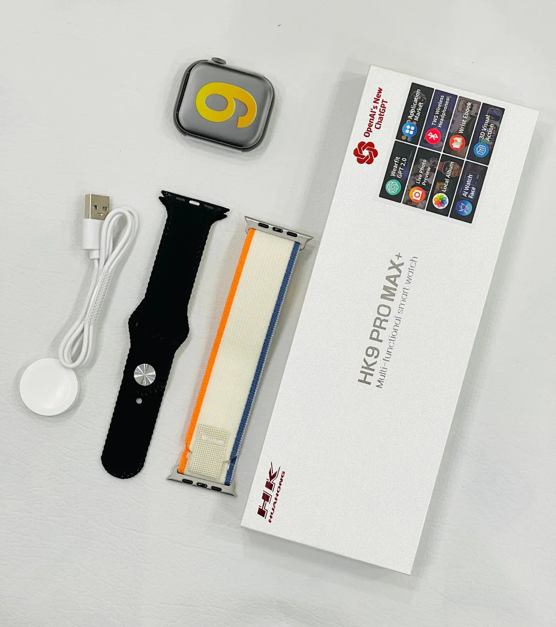 latest model from the 9 Series—HK9 Pro Max+ Smartwatch, designed with Watch OS 10. The HK9 Pro Max+ is the 4th generation of the HK9 Pro Series, featuring 4GB internal memory and upgraded functionalities. Powered by Wearfit Pro, this smartwatch boasts the industry's most powerful chipset and reliable operating system. At Talha Reviews Store, we offer the lowest price in Pakistan with free cash on delivery nationwide.